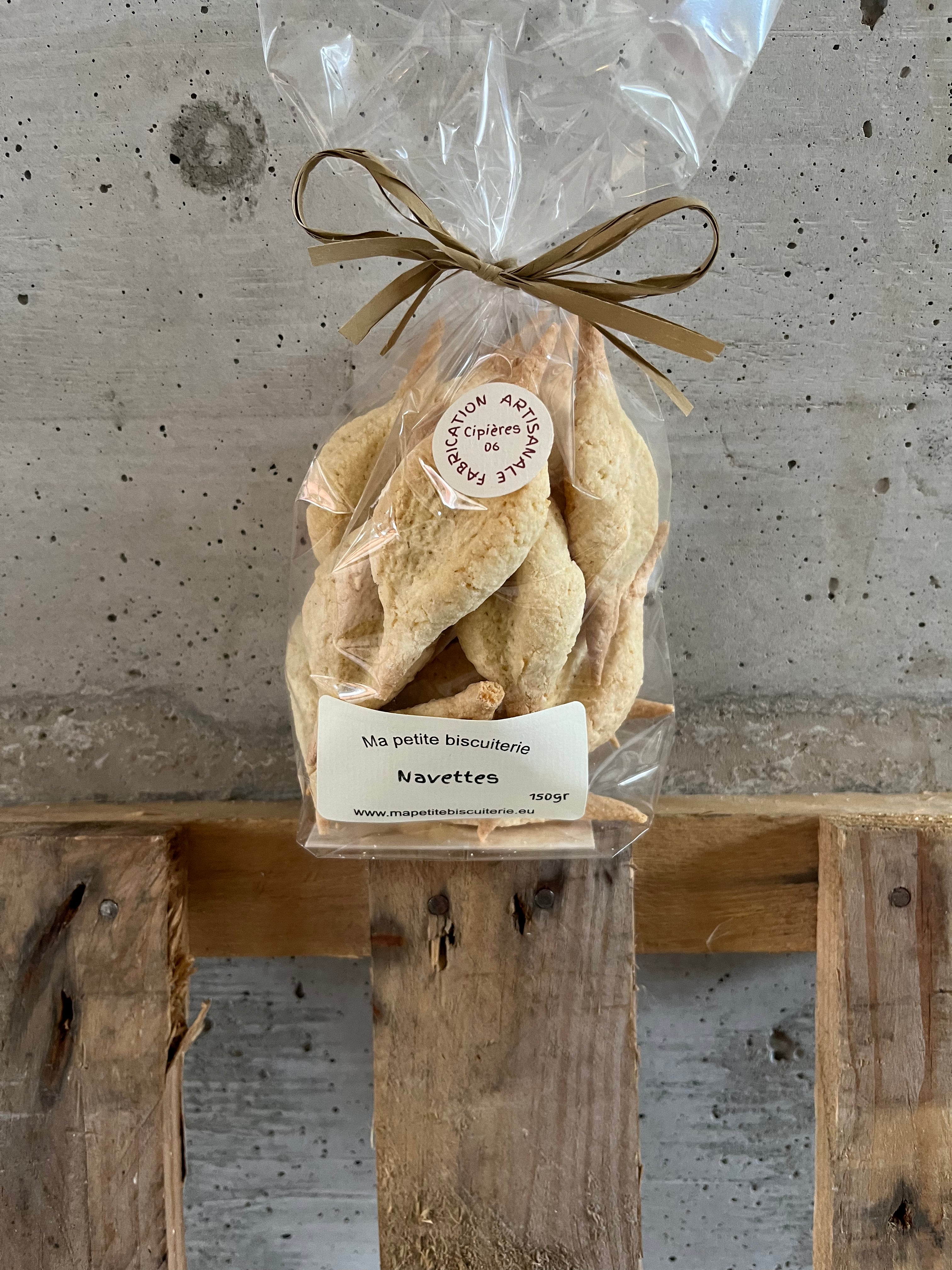 Les sachets de biscuits artisanaux fabriqués à Cipières : navette fleur oranger